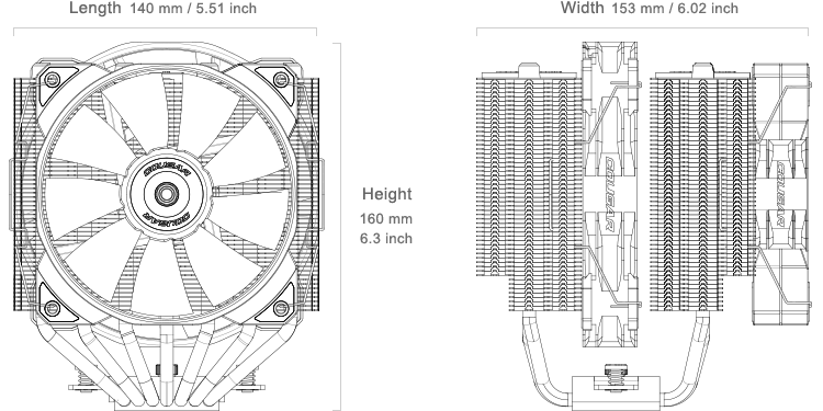 Dilengkapi dengan dua kipas berkinerja tinggi, MHP140-A dan MHP120, heatsink menara ganda ini memiliki dua set menara heatsink untuk kapasitas pendinginan maksimum. Desain uniknya menawarkan area pendinginan yang lebih luas, dengan cepat membuang udara panas untuk memastikan CPU beroperasi pada efisiensi puncak